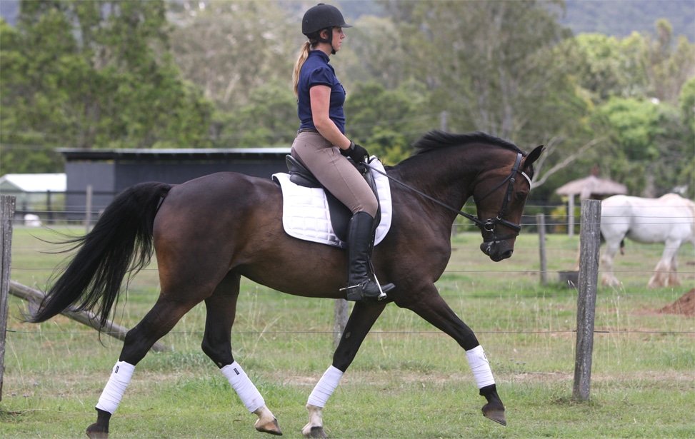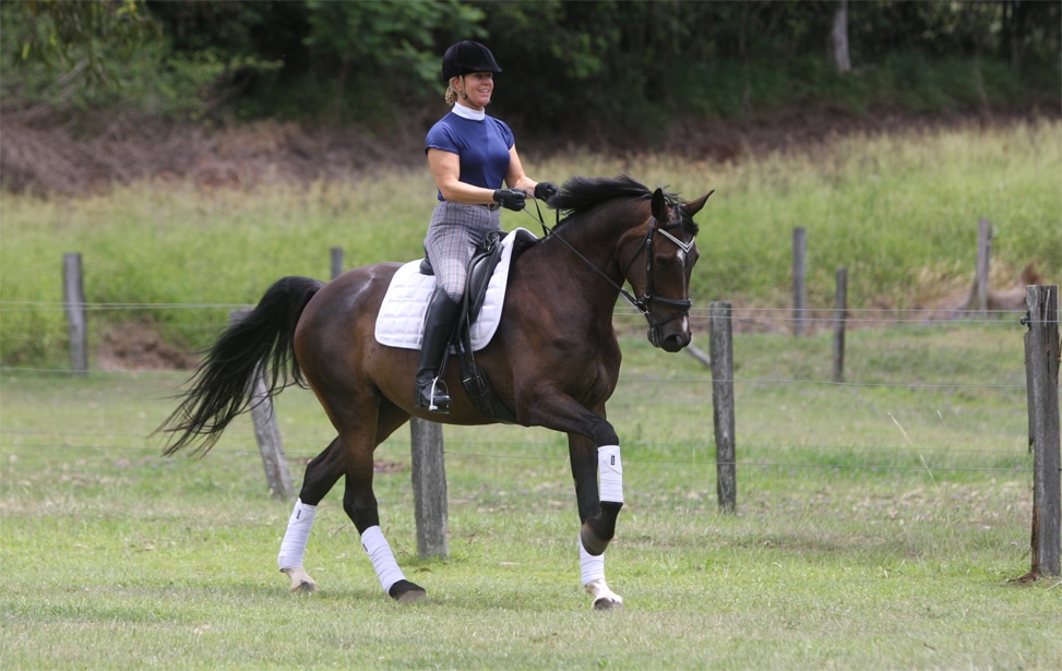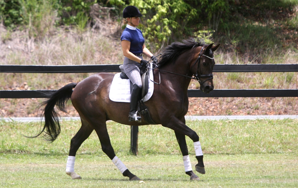 Her movement has plenty of overtrack, however she can also collect well. She is easy to control around a cross country course, and with good judgment to jumps, she is both very competitive and safe.