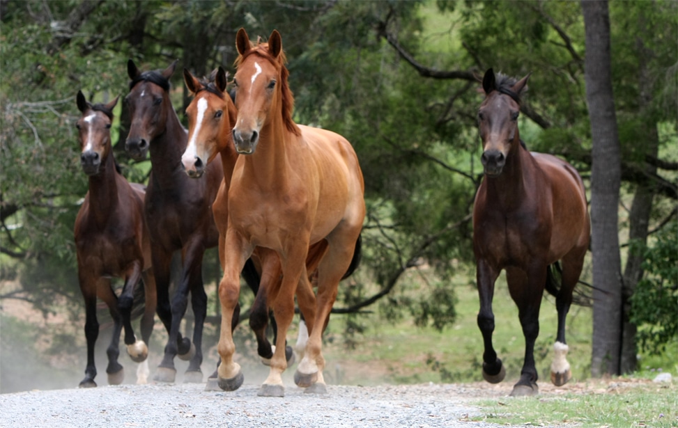 The property is set up to provide a natural lifestyle for the horses while allowing for easy care and maintenance. By living as part of a herd, in large open paddocks all year round, they learn natural social behaviour giving them confidence around other horses and people. The varied landscape offered by the property creates a playground for all horses, allowing them to develop strength and hardiness.